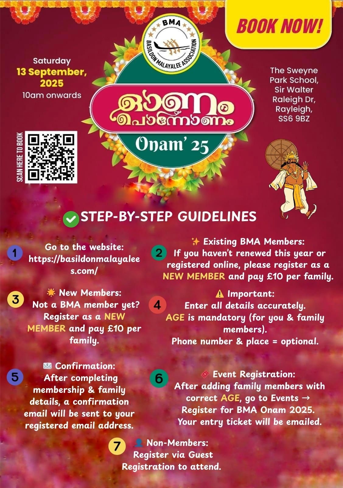 BOOK NOW FOR BMA ONAM CELEBRATION 2025